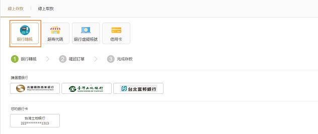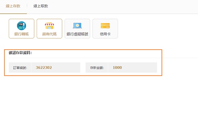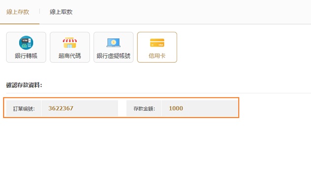 01成功登入網站後,點擊網站右上角的"線上存款"