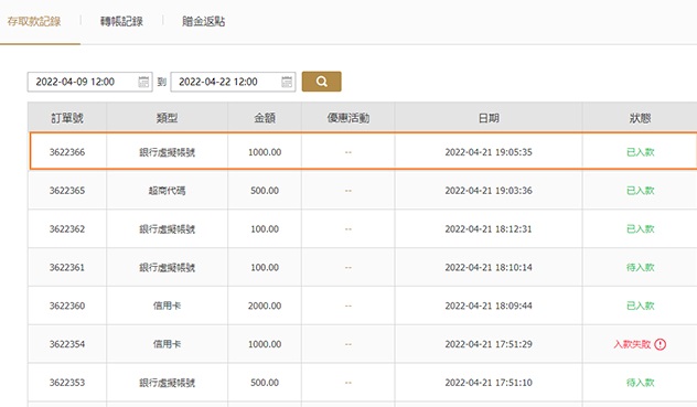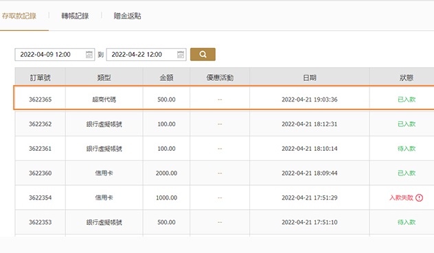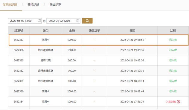 06工作人員審核通過之後,您的存款記錄狀態就會變成“已入款”,至此,您即完成入款。