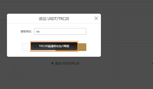 02若未綁定USDT錢包,注意綁定錢包協議地址的開頭格式